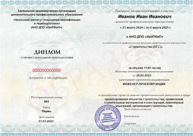 • Профессиональная переподготовка в сфере строительства (ПГС) с выдачей диплома.