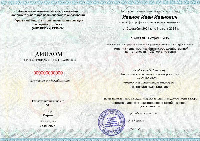 Да, дипломы и удостоверения оформляются в соответствии с действующим законодательством РФ. Документы печатаются на специальных бланках, заверяются печатью АНО ДПО «УрИПКиП».