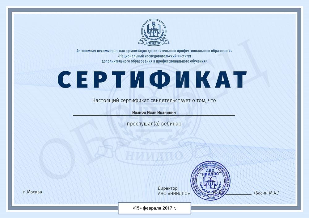 При отсутствии требуемого образования вам будет выдано свидетельство о дополнительном образовании в электронном виде.