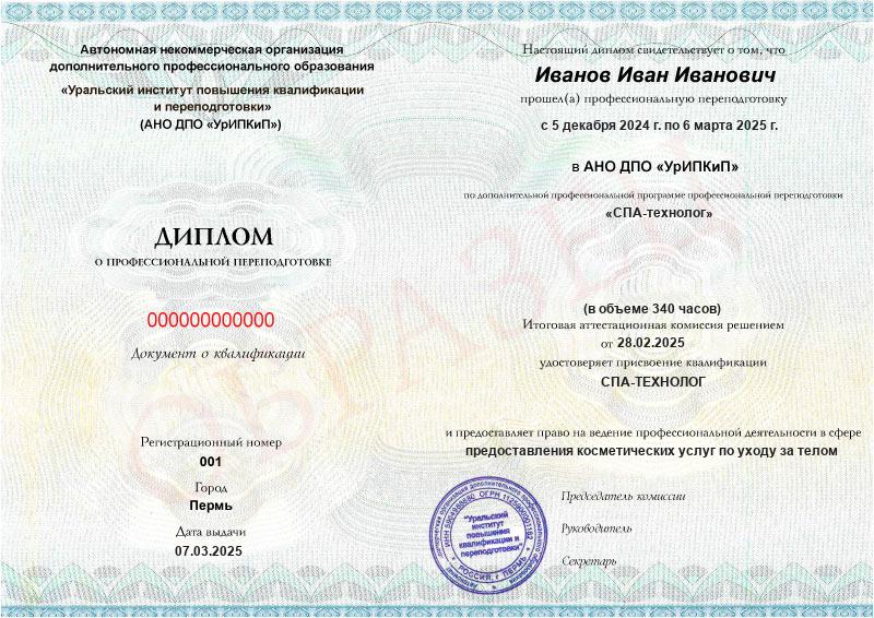 • Квалификация: СПА-технолог