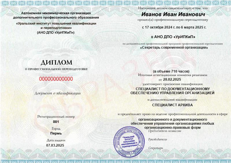 - Образец диплома о профессиональной переподготовке.