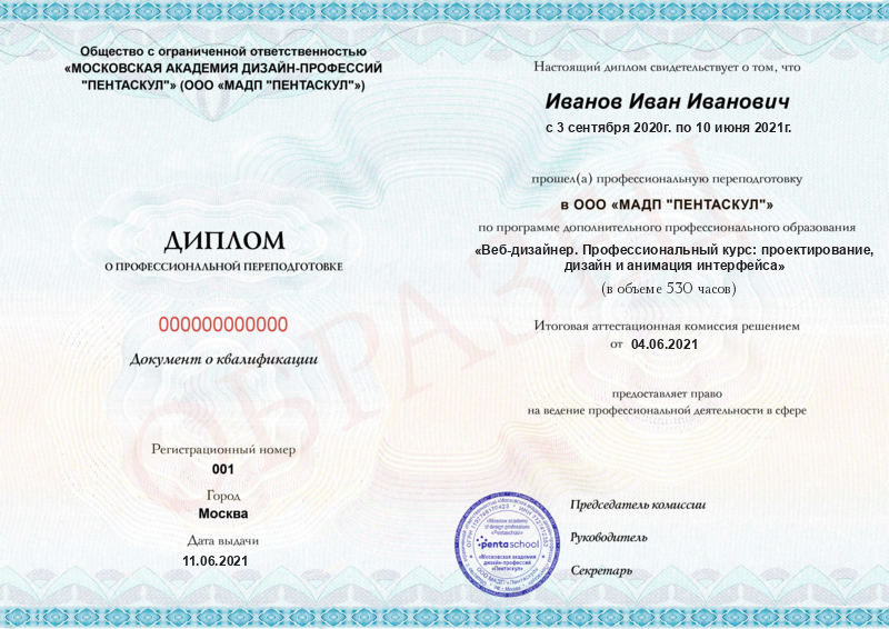 - Диплом московской академии дизайн-профессий Pentaschool.