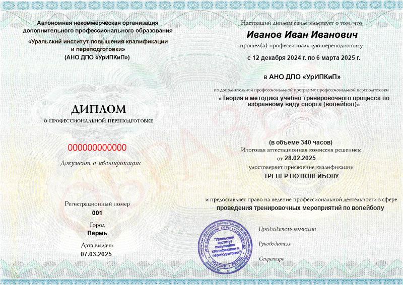 - Образец диплома о профессиональной переподготовке.
